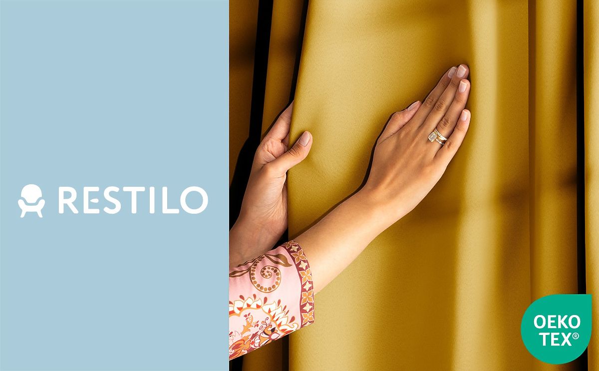 Lukahome.sk » Závesy a záclony / Závesy / RESTILO záves BLACKOUT farba horčicová, klasický štýl, strieborné krúžky, materiál