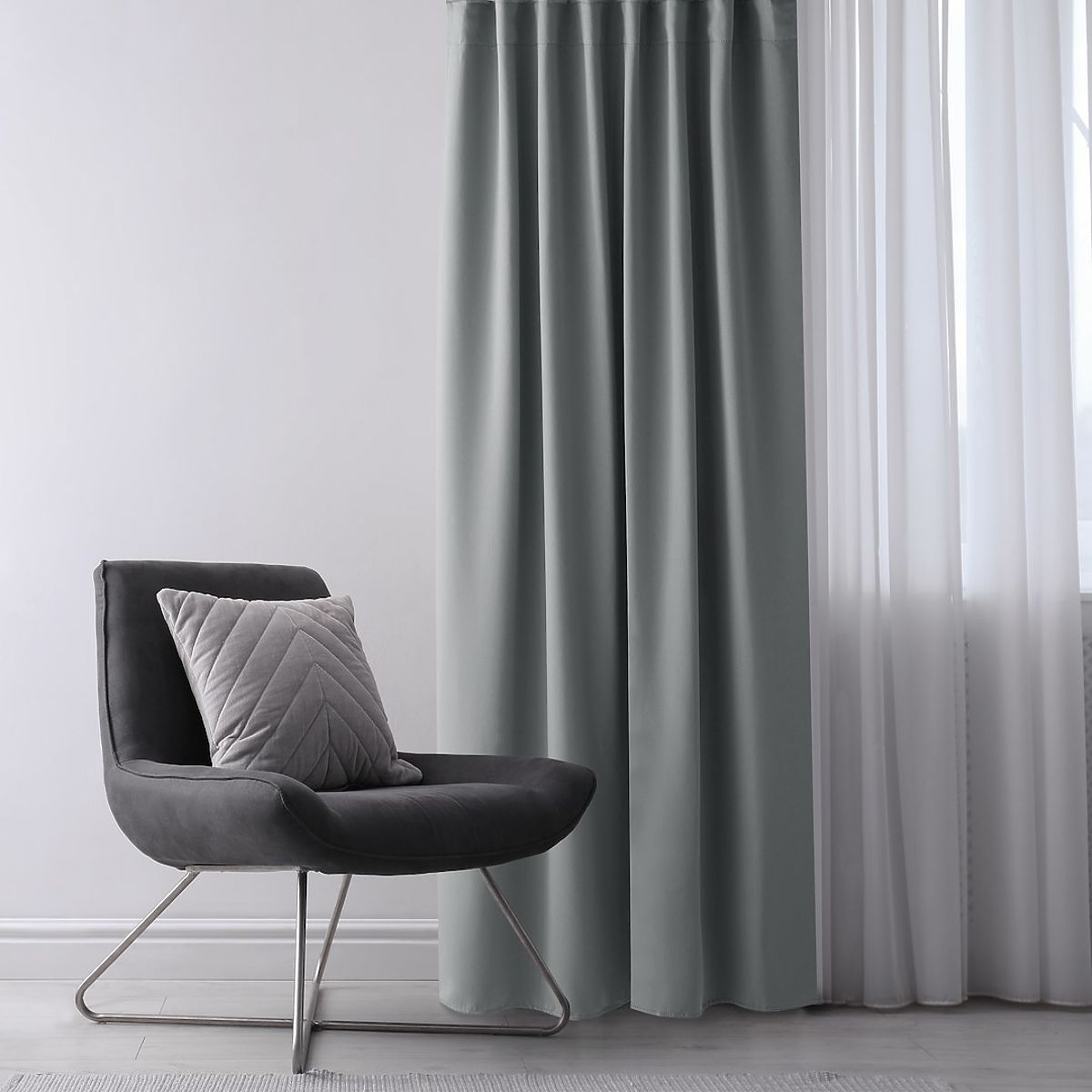 Sivý záves BLACKOUT s klasickým štýlom a striebornými priechodkami. .. viac