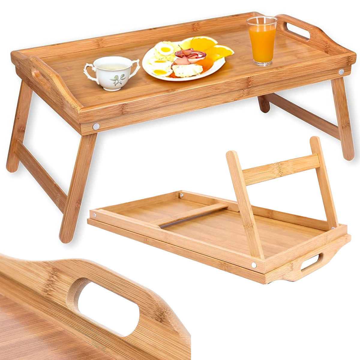 Skladací raňajkový podnos AURELIA Účel: pohodlné podávanie jedál, stolík pod notebook | Farba: prírodný bambus