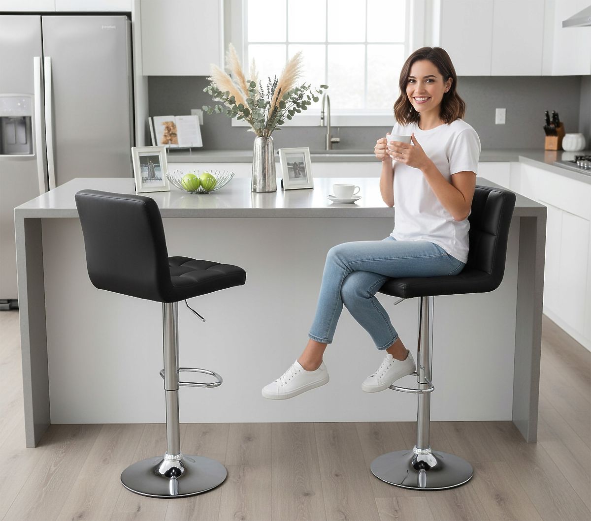 ✅Otočná o 360° - Model poskytuje plnú slobodu pohybu vďaka otočnej konštrukcii, ktorá umožňuje užívateľovi otáčanie o 360 stupňov. Táto funkcia umožňuje ľahké pohybovanie okolo stola alebo baru bez nutnosti zdvíhania alebo posúvania celej stoličky.