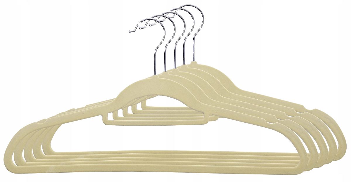 Sada zamatových vešiakov. Flockovaný povrch ich robí veľmi praktickými, pretože zabraňuje skĺznutiu oblečenia. Vešiaky Maxi sú vhodne profilované, čo pomáha predchádzať pokrčeniu odevov.